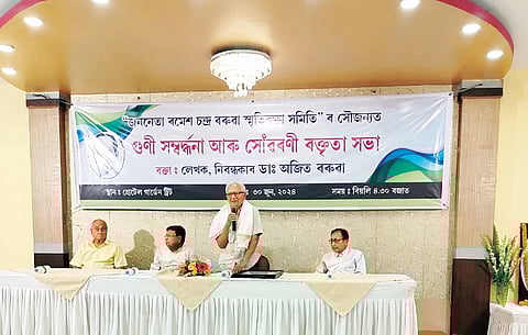 In his welcome address, the president spoke about Dr Ajit Baruah, who delivered the Ramesh Chandra Barooah Memorial Lecture. During the lecture, Baruah spoke about the freedom struggle in Assam at length and dwelt on the forgotten aspects of the struggle. He spoke about the highly principled and idealistic people like late Barooah, who gave the struggle direction. He also told the audience about the launch of the freedom struggle against the British even prior to 1857. As early as 1828, under the leadership of Dhananjay Buragohain, Gamadhar Konar was installed as king and the struggle started with great vigour. In 1830, Piyoli Phukan and Jiuram Dulia baruah were hanged.
