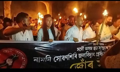 On Saturday evening, the AASU activists under Dhemaji and Lakhimpur district units unitedly staged torchlight rally in Gogamukh demanding the immediate closure of the contentious river dam project which has at present been considered to be an ominous cause for future catastrophe in the downstream area of Subansiri River covering Dhemaji, Lakhimpur, Majuli and Biswanath districts of North Assam.