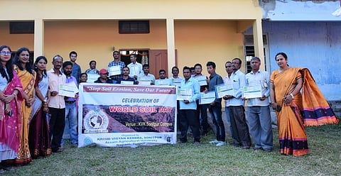 Tezpur: A day-long programme on World Soil Day was organized on Thursday at KVK, Sonitpur campus. Dr Pramod Chandra Deka, Head, KVK, Sonitpur, welcomed the farmers and dignitaries and offered the inaugural speech. Dr. Namita Dutta, SMS (Soil Science), elaborated about the theme of World Soil Day and explained about the hazards of soil erosion, measures to take up for reducing soil erosion, significance of balanced fertilizer application, importance of Soil Health Card (SHC) and encouraged the farmers for soil test. An extension bulletin entitled Soil Health Card: Farmer’s awareness about Soil Test was released and distributed among the farmers. Prakash Chandra Bora, District Agriculture Officer, Sonitpur emphasized soil health restoration and use of recommended dose of fertilizers in crop field.