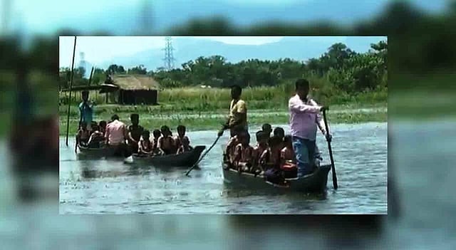 One can clearly see in the video footage that the school teachers along with the students have been crossing the wetland on a country boat daily from one bank to another.