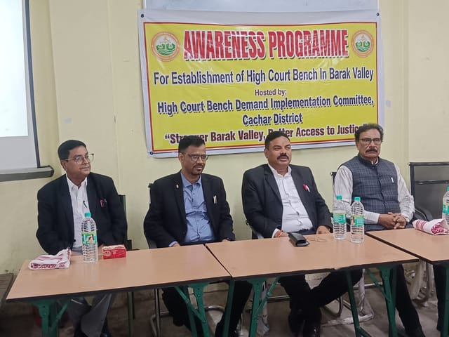 An awareness meeting organised under the call of the Cachar District Unit of the High Court Bench Demand Implementation Committee was held today at Arun Kumar Chanda College, Silchar, drawing participation from students, legal professionals, and citizens in support of establishing a permanent High Court Bench in Barak Valley.