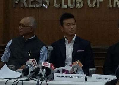 The former Indian football captain formally launched his new political party at the Press Club of India in New Delhi.