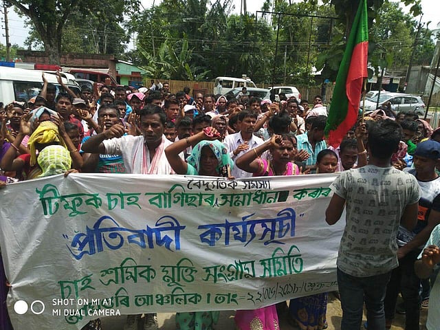 More than 200 workers assembled at the Amguri-Nagaland Bus stand. Thereafter they took out a mass rally organized by Chah Sramik Mukti Sangram Samiti, Amguri Regional Committee shouting various slogans and they continued their protest in front of the Amguri revenue circle office premises for two hours despite the scorching heat.