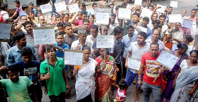 Vendors of Fancy Bazar, Guwahati took out protest on Wednesday against the Guwahati Municipal Corporation for evacuating them from the footpaths of Fancy Bazar.