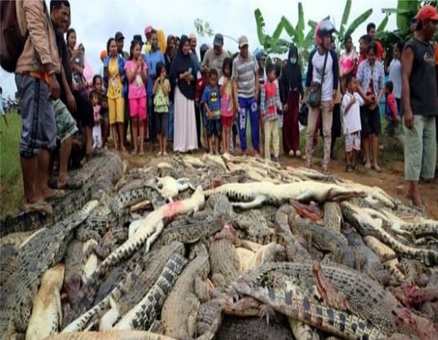 The crowded localities of Indonesia killed more than 300 crocodiles in revenge for the death of a man killed by a crocodile at a breeding farm. The revenge killing happened on Saturday in Papua province following the funeral of the man. The victim identified as 48-year-old Sugito, who was bitten on the leg and then fatally struck with a tail of one of the crocodiles perished while looking for grass to feed his livestock.