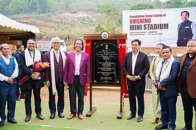 Shillong: Meghalaya Chief Minister Conrad Sangma on Monday laid the foundation stone for a natural football turf with a covered gallery at Patarim Umsning in Ri-Bhoi district, with an estimated cost of Rs 4.71 crore.