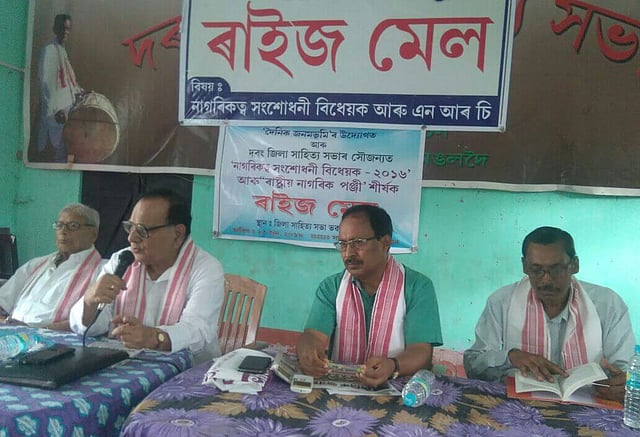 The meeting presided over by Dr Ram Chandra Deka, president of Darrang Zila Sahitya Sabha, was addressed by several veteran and young speakers, including Dr Nagendra Nath Sarma, Phulendra Nath Saharia, Dr Jamaluddin Ahmed, Lohit Ch Kalita, Bhabesh Kalita and Khanindra Rajbongshi. Dr Nagendra Nath Sarma, a veteran educationist, writer, thinker and the president of All Assam Ex MLA Sanmilani, in his discussion underlined how the small population of around 30,000 Hindus had been facing torture and they had been forced to wear only yellow clothes for their identification. He expressed doubt whether the Centre would bow down before the protest of about one crore people of Assam.