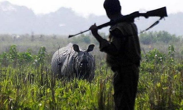Kaziranga, June 12: A poacher was killed in a gun battle with forest guards in Bagori range of Kaziranga National Park on Monday. As per information from the staff, Range Officer Pankaj Bora launched a search operation near the Kawoimari camp of Bagori Range from Monday evening and at night, the guards spotted a group of poachers entering the park. The poachers opened fired at the forest guards. One poacher was shot dead and another somehow managed to escape. The slain poacher is yet to be identified. A horn of a mature rhino, a 303 rifle, 35 live cartridges, a mobile handset, cash, blood in a bottle, kerosene and many objectionable materials were seized from the encounter site, but the carcass of the rhino was not found near the camp, said Pankaj Bora, Range Officer of Bagori range office.