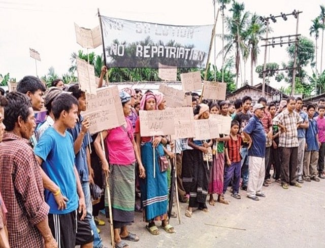 But, the newly floated Mizoram Bru Displaced People’s Coordination Committee (MBDPCC) and the representatives of Bru Internally Displaced People (BIDP) in a joint memorandum addressed to Rajnath Singh, Union Home Minister, New Delhi, and submitted through the Block Development Officer, Dasda, North Tripura, on Wednesday last, expressed the feelings and views of around 30 thousand refugees for repatriation. There was a massive protest demonstration in and around the relief camps against their return to the native land on various developmental issues. Speaking over telephone from Kanchanpur refugee camp in North Tripura, Laldingliana, president of MBDPCC said, “The Bru refugees, in general, declined to endorse the agreement signed by Mizoram Bru Displaced People’s Forum in New Delhi without seriously addressing their genuine grievances to facilitate smooth repatriation.”