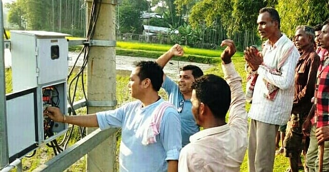 Silchar, Sept 20: BJP leader Thoiba Singh inaugurated electric transformers at Narainpur Paschim Basti and Makhan Nagar under Digli Bahadurpar GP under Deen Dayal Upadhyaya Gram Jyoti Yojana (DDUGJY) recently. Deen Dayal Upadhyaya Gram Jyoti Yojana is a government of India scheme which has been designed to provide continuous power supply to rural India. He inaugurated a 25 kw electric transformer. The scheme is aimed at provision of bulbs among the households running without electricity and light. He inaugurated a total number of 5 transformers on a single day. The beneficiaries and leading citizens of the area, Rashid Ali, Zameer Ahmed, Alauddin, Munzil Ahmed and Ibaton Sharma have expressed their happy and contentment towards Thoiba Singh and the BJP government.