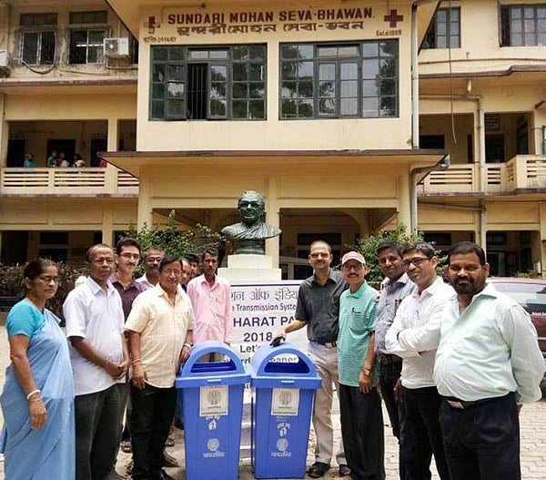 Silchar, May 29: Officials of Powergrid Corporation of India Limited, sub stationed at Silchar, and headed by Deputy General Manager K K Mehdi visited Sundari Mohan Seva Bhawan, Silchar on Tuesday and donated two dustbins under the Swachh Bharat Abhiyan - Green City, Clean City - My Dream City. Devdas Acharjee, honorary administrative officer of Sundari Mohan Seva Bhawan expressed gratitude to Powergrid Corporation on behalf of Sundari Mohan Seva Bhawan.