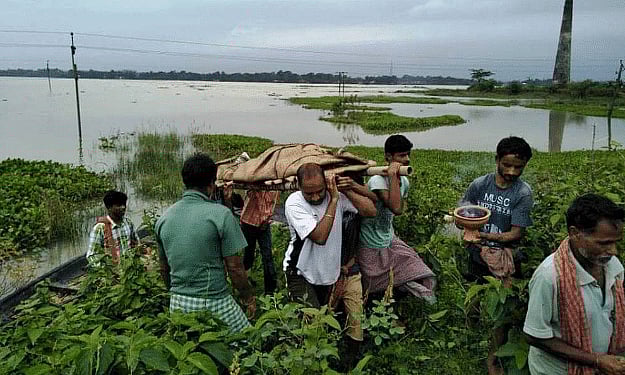 The local crematorium and burial ground being under water, the MLA initiated the last rites of Nishi Namasudra and Kulendra Namasudra who had met their natural death. It was most commendable to see the MLA wade through knee deep water and did the last rites of both the deceased with the help of their family members and his own people. Rising above all considerations, Kamalakhya Dey Purkayastha with high spirit and human thoughts in mind virtually fought the surging flood waters. The MLA came in for high praise even from his political adversaries.