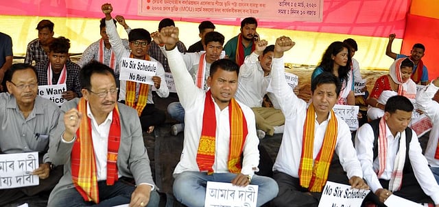 GUWAHATI: On the fourth day of the session of the Assam Legislative Assembly (ALA) on Thursday two organizations registered their protests through dharnas at Dispur Last Gate. The Guwahati District Committee of the Sadou Asom Kalita Janogosthi Chatra Santha (AAKJCS) staged a dharna demanding ST status to the Kalitas, besides the formation of a development council for them. The Deori Students’ Union (DSU) also staged a dharna demanding inclusion of the Deori Autonomous Council (DAC) in the Sixth Schedule of the Constitution of India. They also demanded delimitation of the DAC constituencies.
