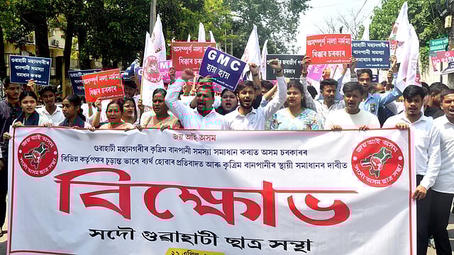 More than a hundred members gathered, raising slogans against agencies including the Guwahati Municipal Corporation (GMC) and the Guwahati Metropolitan Development Authority (GMDA), and demanding immediate corrective action.