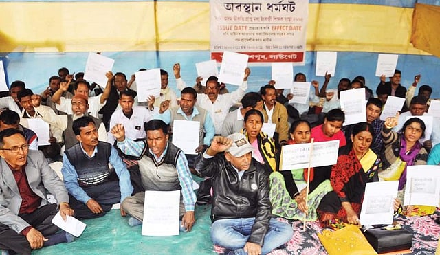GUWAHATI: On the fifth day of the Budget Session of Assam Legislative Assembly, All Assam Recognised M E Teacher’s Association (AARMETA) 2005 staged a sit-in protest upholding various demands at Dispur Last Gate, here in the city, on Tuesday.