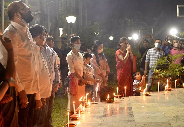 This year, the students' union lighted 1,000 flames near the statue in the evening at Dighalipukhuripar. Every year the students' body lights 10,000 flames at Dighalipukhuripar . However, this year they lighted only 1,000 flames because of corona.