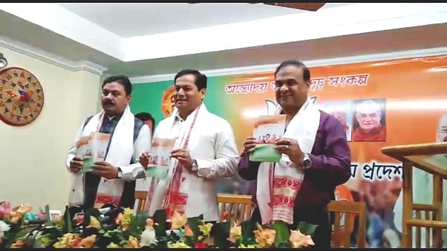 Guwahati: Chief Minister Sarbanada Sonowal along with State Minister Himanta Biswa Sarma and BJP State president Ranjit Dass released the election manifesto for the ensuing Panchayat Polls at the state BJP office on Wednesday. Two songs for the polls campaign were also released.