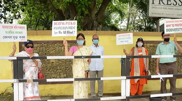 GUWAHATI: The activists of the Assam Environmental NGO Forum staged a protest on the streets by raising placards to draw attention of the government on several environmental issues of the State, on Friday.