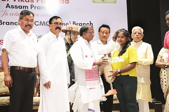 Guwahati: Governor Lakshman Prasad Acharya distributed artificial limbs to some beneficiaries with special needs at a programme organized by Bharat Vikas Parishad at the KBR Auditorium, Cotton University, on Sunday.