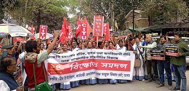 Guwahati: Answering the clarion call of the central trade unions, workers associations and joint farmers associations, a state-wide strike was held by workers and farmers on Thursday. Several national worker unions, trade unions and farmers organisations had called on their regional units to organise a nation-wide strike on February 16 against the anti-farmer and anti-worker stance of the government.