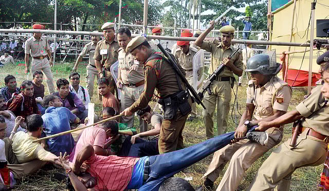 GUWAHATI: Baton-wielding police personnel in riot gear were seen to have swooped down on differently-abled at Dispur Last Gate on Friday, leaving many of them injured. Members of the Pratibandhi Suraksha Sangstha, Assam (PSSA); the Drishtihin Parishad, Assam (DPA) and the All Assam Blind Students’ Union (AABSU) were staging a demonstration in support of their demand for the filling up of 4,419 backlog posts reserved for persons with disabilities. The members of the three organizations were agitated as State Social Welfare Minister Pramila Rani Brahma failed to meet her assurance on the filling up of the backlog posts. The demonstration gained steam when none from the administration came to receive the memorandum, a demand the agitators were insisting on. This led to a scuffle with the agitators making their all-out effort to overpower the police personnel to go to the road and the police resisting them with bamboo barricades.