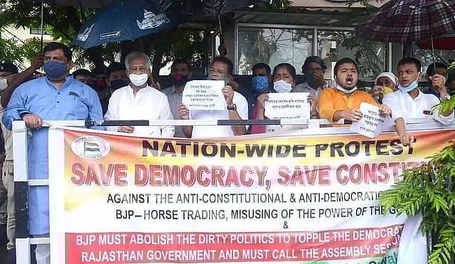 Though the Congress decided to stage protest in front of Raj Bhavans across the country to protect the Constitution and democracy, APCC was not permitted to do the same. Hence the protest was staged at Guwahati Club where the activists demanded that BJP must abolish the dirty politics to topple the democratically elected Rajasthan government and must call Assembly session.