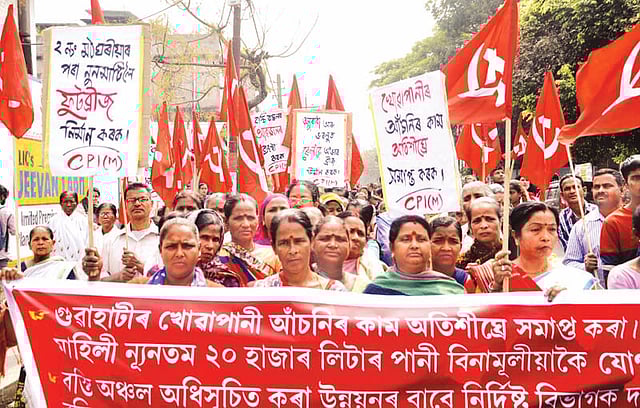 The CPI (M) held a protest demonstration in demand for a permanent solution regarding the problem of water supply. CPI (M) Guwahati Regional Committee Secretary Kashyap Chowdhury expressed his indignation at the hitch in water supply and commented that a thorough CBI probe should be made into the matter. “The irregularities in water supply need to be methodically investigated and the government needs to quicken its pace with the water supply schemes”, he conditioned.