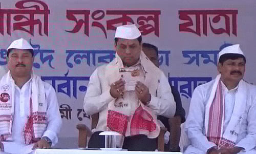 GUWAHATI: The Gandhi Sankalpa Yatra started by the BJP during Mahatma Gandhi's 155th birth anniversary, inaugurated by the Prime Minister, was organized in the city on Saturday. The programme was initiated in the State on October 14.