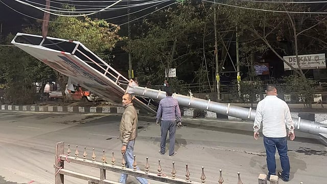Illegal hoardings, banners, and unipoles are being systematically identified and dismantled as part of a citywide drive aimed at ensuring full compliance with election guidelines.