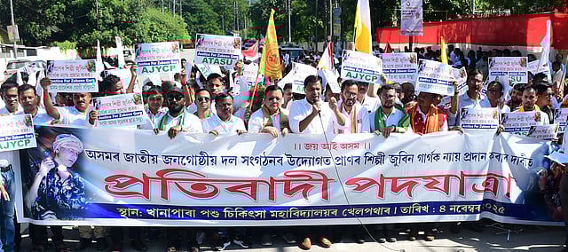 GUWAHATI: The Asom Jatiyatabadi Yuva-Chatra Parishad (AJYCP), along with 25 affiliated ethnic and student organizations, staged a massive protest march on Tuesday in Guwahati, demanding a transparent and fair investigation into cultural icon Zubeen Garg's death.