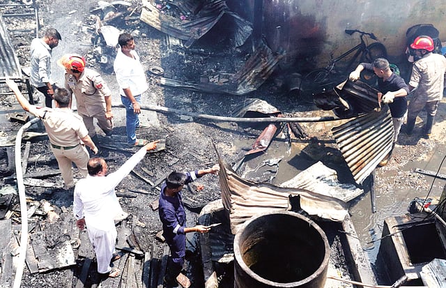 GUWAHATI: A massive fire broke out in the densely populated Gandhibasti area on Thursday morning, destroying more than 20 houses and leaving several families homeless. The fire reportedly originated from Anu Baruah Path near the Tiniali locality and is suspected to have been triggered by a gas cylinder explosion amid scorching heat conditions.