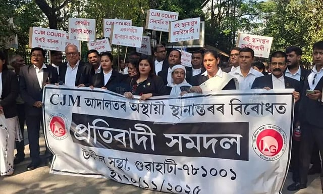 GUWAHATI: Members of the Lawyers Association, Guwahati, on Monday staged a protest march in the city opposing the temporary relocation of the Chief Judicial Magistrate (CJM), Kamrup (M) Court to the General Administration Department (GAD) building.