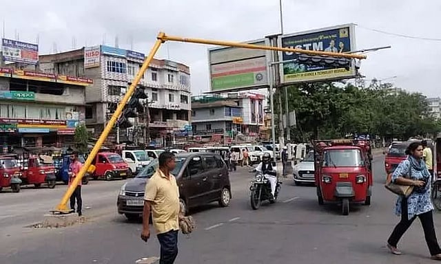GUWAHATI: Days after the inauguration of the newly Integrated Traffic Management System (digital traffic signals), a traffic signal pole got toppled after a dumper rammed into it.