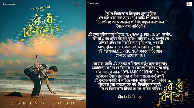 GUWAHATI: A wave of public outrage swept across the city on Saturday after ticket prices for ‘Roi Roi Binale’ — the on-screen appearance of the musical icon Zubeen Garg — rose sharply in several Guwahati multiplexes. The sudden increase, reportedly by nearly Rs 100 across multiple categories, triggered widespread criticism, with many accusing theatre owners of “commercializing Zubeen’s legacy.”