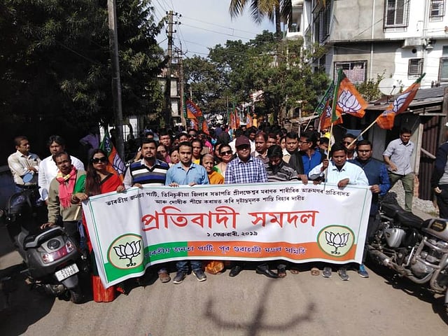 Guwahati: Following the brutal physical assault upon Tinsukia Unit Bharatiya Janata Party (BJP) President Lakheswar Moran on January 30, 2019, BJP staged a massive protest across all the districts in the state on February 1 in reaction to the Tinsukia clash.
