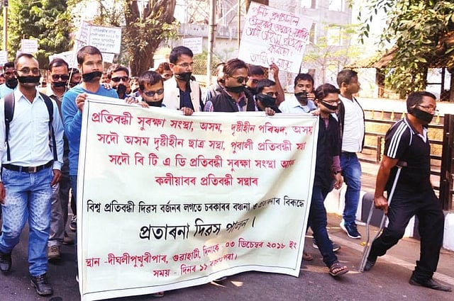 GUWAHATI: Persons with disabilities took to the streets in Guwahati on the International Day for Persons with Disability on Monday– not to celebrate the day, but to register their protest against deprivation they have been facing. They observed the day as black day.