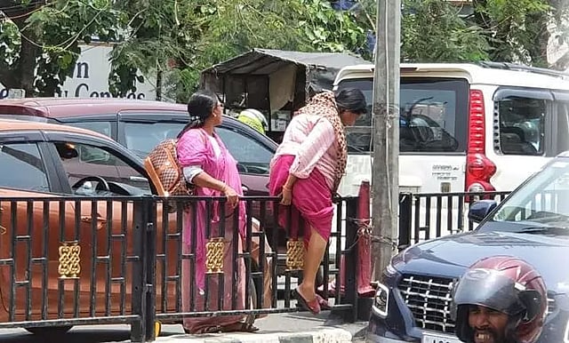 Earlier, there was no road divider. There was a traffic police point in front of Down Town Hospital point. When vehicles would stop at the traffic signal, people could easily cross the road. The bus stoppage is nearby and people could cross the road quickly and board the city buses.