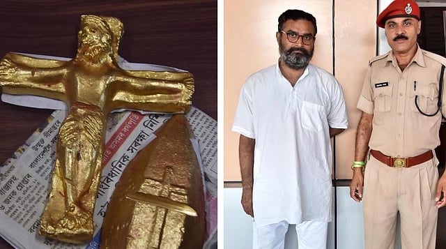 GUWAHATI: One Narsing Narayan was arrested at Kamakhya railway station on Friday for carrying two fake gold figurines, one of Jesus Christ and the other a boat. Narayan is from Uttar Pradesh and he claimed that the figurines were bought from a man in Lakhimpur. A case (204/19 U/S 420) has been registered against him.