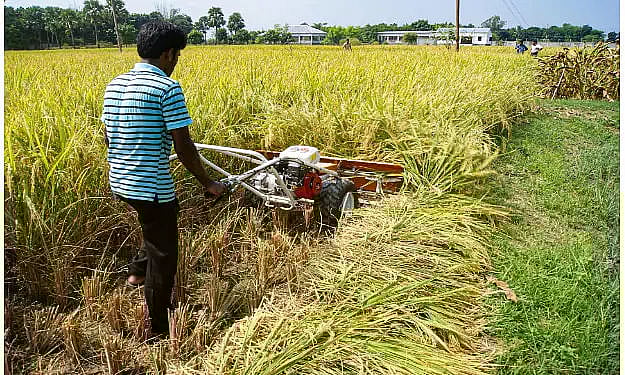 GUWAHATI: The Krisi Vigyan Kendra (KVK) Kamrup on Tuesday took a step ahead of farm mechanization by demonstrating Mini Combine harvester which is a versatile machine designed to efficiently harvest a crop. The name derives from its combining three separate harvesting operations—reaping, threshing, and winnowing into a single process. More than 50 farmers participated in the program. Scientists from International Rice Research Institute, Guwahati were also present during the event. Dr Dhirendra Nath Kalita, Head of KVK Kamrup addressed the farmers and briefed them about the mini combine harvester.