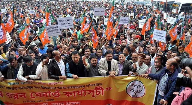 GUWAHATI: The Assam BJP leaders and workers on Wednesday took out a protest march in the city to gherao Rajiv Bhawan, the Congress headquarters, and vent their anger against the Opposition party particularly Rahul Gandhi for not accepting the Supreme Court’s recent verdict that did not see any irregularity in the Rafale deal.