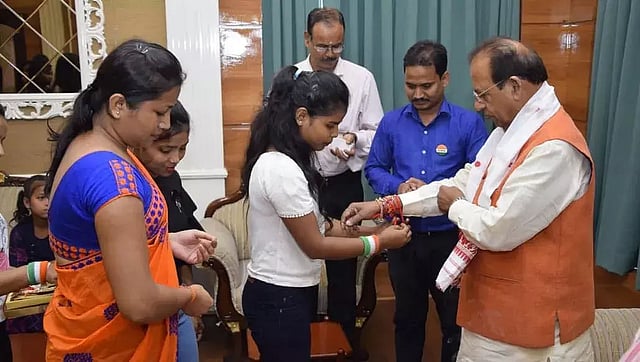 The Governor said, "The age-old tradition of tying thread on the wrist signifies a special bond between brothers and sisters. It showcases the unwavering affection and trust between brothers and sisters. I am deeply touched by the gestures of sisters from various organizations in Assam coming down to Raj Bhavan to tie a sacred Rakhi on my wrist."