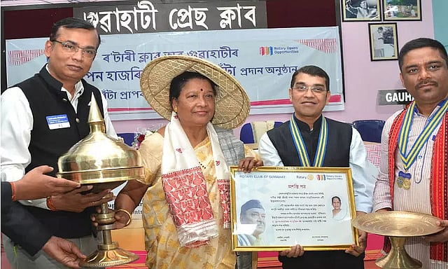 "Through social appreciation an artiste gets the zeal to do more works in the coming days. I am thankful for this award and it has motivated me to make more Kamrupi Lokgeet music," said Dhanada Pathak, wife of late Ramesh Pathak. The programme was attended by Rotary District Governor Subhasish Chatterjee, Assistant Governor Abhishek Jatani, among others.