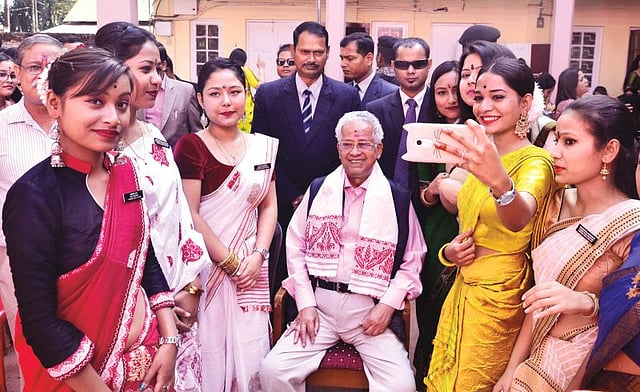 As the Chief Minister, Tarun Gogoi had been in the habit of visiting B Barooah College and Handique Girls’ College of Guwahati on the day of Saraswati Puja. Even as he is no longer the Chief Minister of the State, yet he took the pain to visit to the two colleges of the city and joined students and faculties to celebrate Sarswati Puja on Sunday.