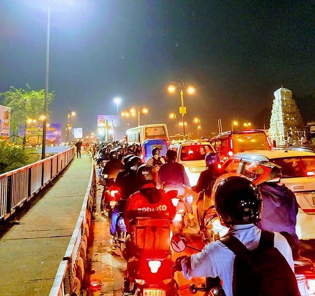 Another commuter expressed surprise at seeing traffic personnel deployed on the flyover itself to regulate movement. "I travel across many cities in India and I have never seen traffic personnel controlling traffic on a flyover. This is the first time," he said.