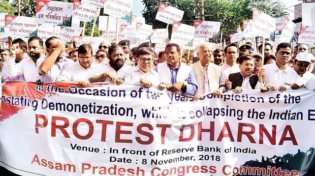 GUWAHATI: The workers of the Assam Pradesh Congress Committee (APCC) led by its senior leaders staged a protest rally against demonetization in front of the Reserve Bank of India located at Panbazar on Thursday at around 11:30 am.