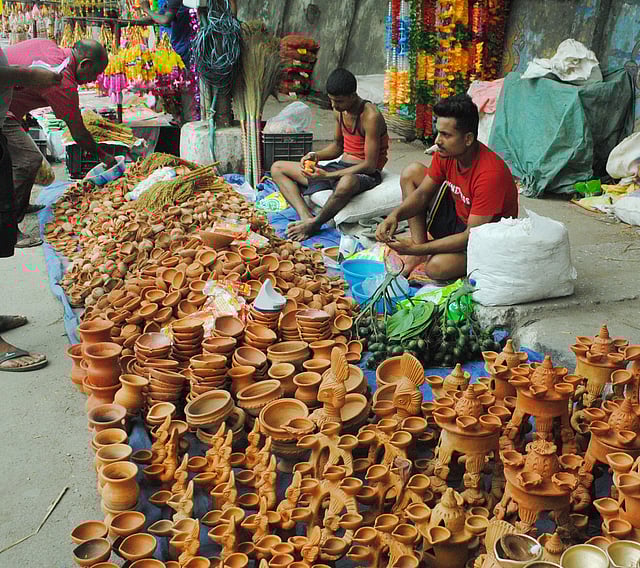 Apart from the rest of the state, the Diwali and Kalipuja markets in Guwahati are glutted with firecrackers, electric gadgets, and a whole lot of earthen lamps.