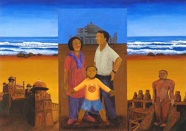 Laishram Surjit Khuman, a Manipuri visual artist, born and raised in Assam, dedicates himself to painting mostly children and their world, and he indeed has a special gift for it. We notice a subtle kinship between the artist and his subject, a spontaneous exuberance to capture a child's world through color, line and brushwork, the unpredictable vivacity that we always associate with children.