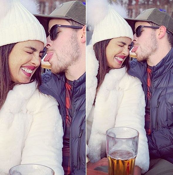Newly wedded couple Nickyanka shared a photo of them celerating holidays in Switzerland with Nick Jonas by her side.Priyanka had don a white pullover with a white jacket and a white wollen pom pom cap. She looked adorable and cute at the same time.