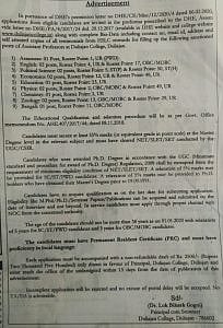 Note: Each application must be accompanied by a non-refundable draft of Rs. 2500/- only drawn in favor of Principal, Duliajan College, Duliajan and must reach the office of the undersigned within 15 days from the date of publication of this advertisement. no TA/DA will be admissible.