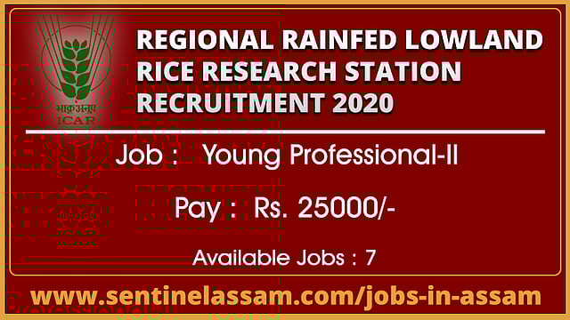 ICAR-Regional Rainfed Lowland Rice Research Station, Gerua, Hajo, Assam invites applications from qualified candidates for the posts of Young Professional-II under the Project entitled "Establishment of Biotech-KISAN Hub at Regional Rainfed Lowland Rice Research Station (RRLRRS), ICAR-National Rice Research Institute (NRRI).Gerua, Hajo, Kamrup, Assam" on a contractual basis